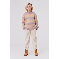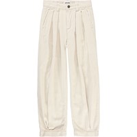 Aleen is een lichtgekleurde corduroy broek in een wijde pasvorm. De broek heeft plooien aan de voorkant. Let op: maten t/m 134 hebben drukknopen en geen gewone jeansknopen.