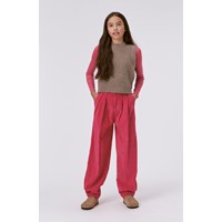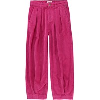 Roze broek van corduroy. Deze broek is van 100% katoen, heeft plooien aan de bovenzijde en bij de enkels om een wijde pijp te creëren. Het heeft steekzakken, achterzakken en een ruimvallende pasvorm. De tailleband van de broek kan worden aangepast met een elastiek aan de binnenkant, zodat het perfect past bij alle kinderen. Maten 92-134 hebben een drukknoop voor het gemakkelijk aan- en uittrekken. Maten 140-176 hebben een gewone jeansknoop.