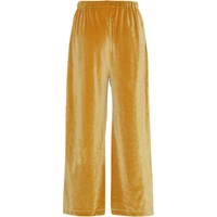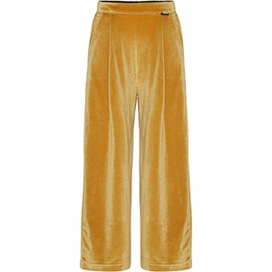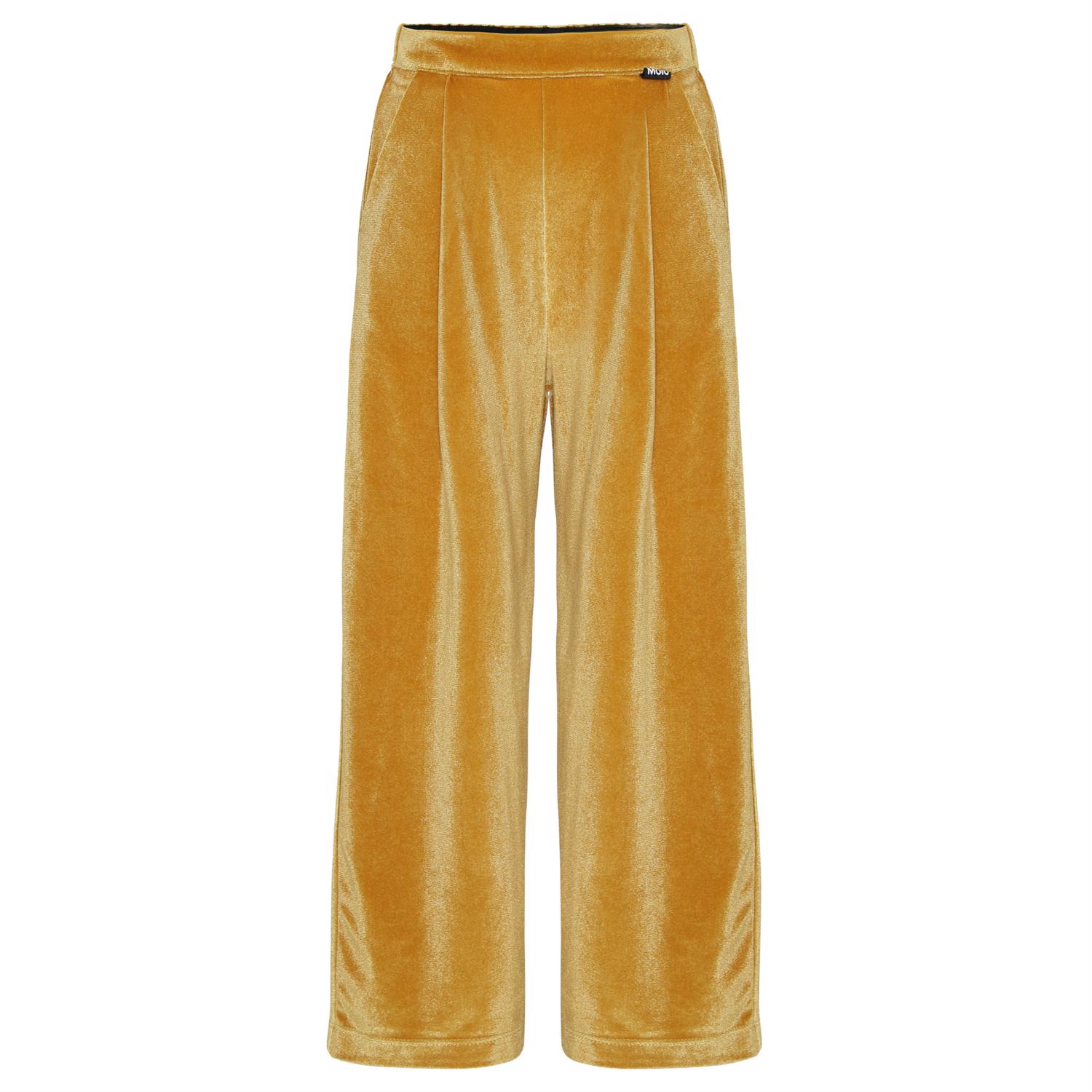 Alfa is een gouden fluwelen broek in een losse pasvorm. Het heeft een elastische taille. Draag de broek met een bijpassende top.
