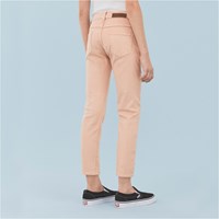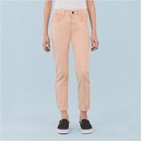 Alfa is een roze gekleurde spijkerbroek in een klassieke pasvorm met voor- en achterzakken.