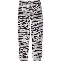 Alfrida is een joggingbroek van biologisch katoen met een zwart witte tijgerprint. De joggingbroek heeft een ruimvallende pasvorm en een comfortabele elastische tailleband. Op een van de pijpen staat een geprint geel Panthera-logo.