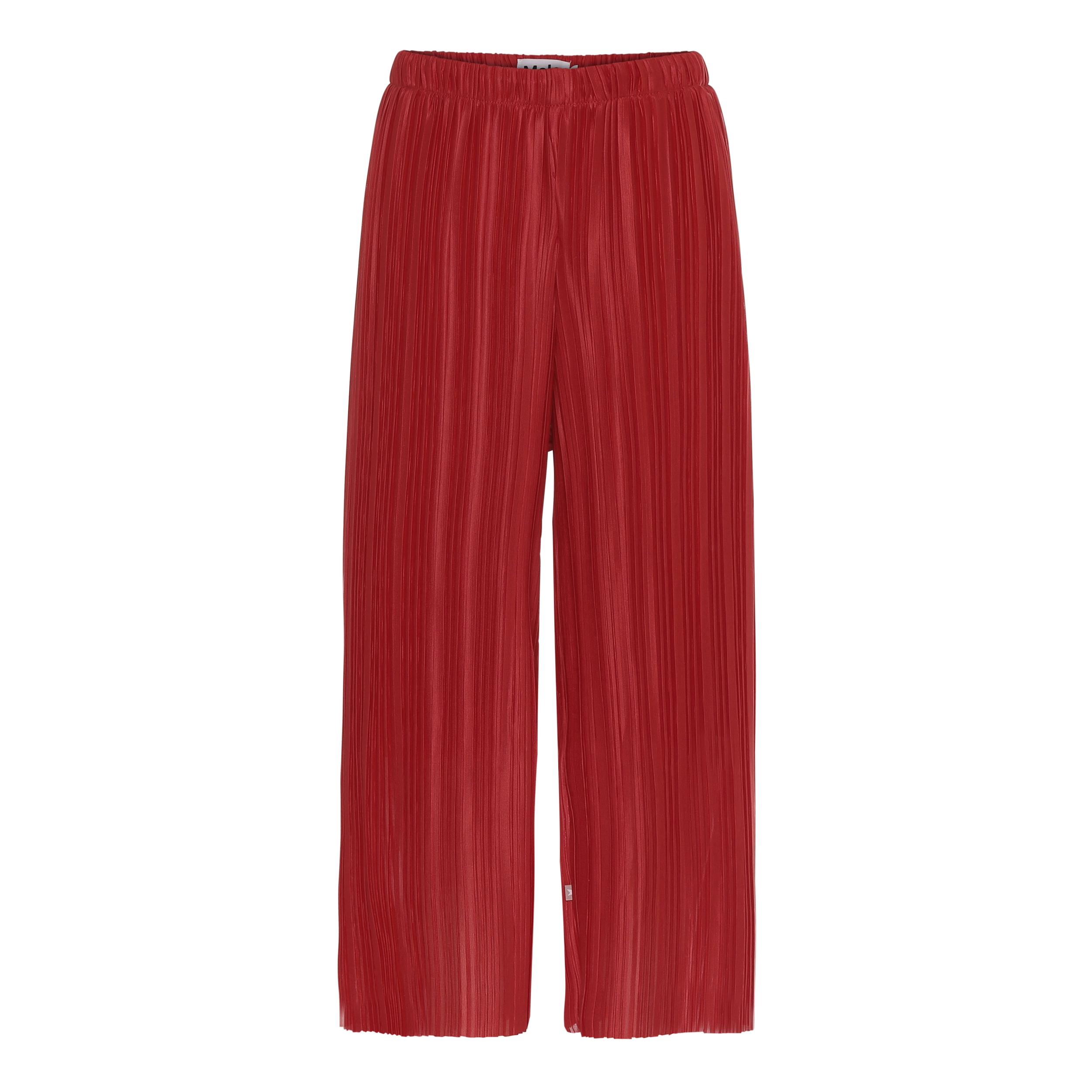 Aliecia is een geplooide broek in donkerrood. Het heeft een elastische taille die zorgt voor een comfortabele pasvorm.