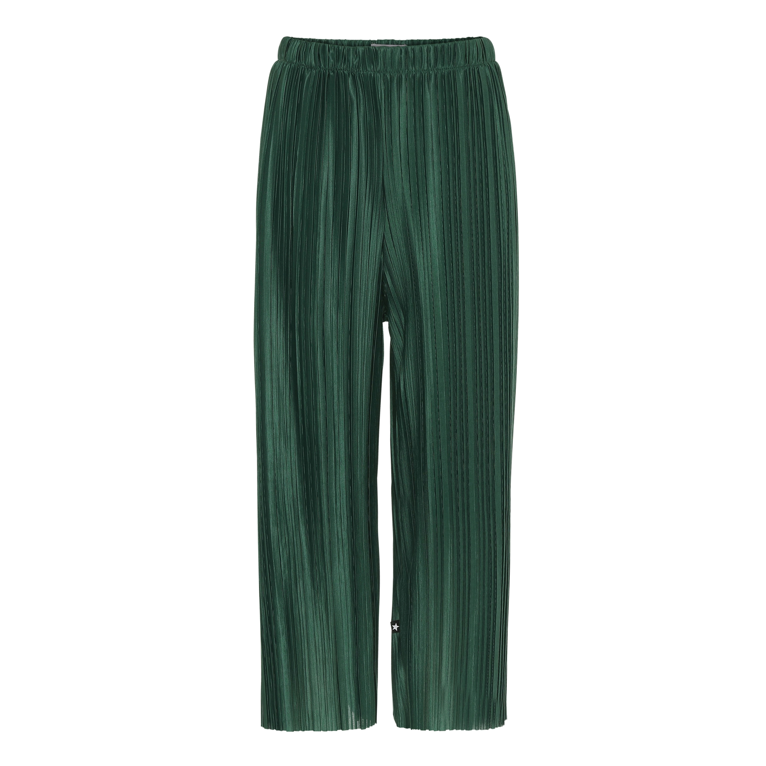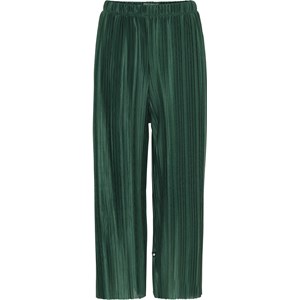 Aliecia is een geplooide broek in donkergroen. Het heeft een elastische taille die zorgt voor een comfortabele pasvorm.