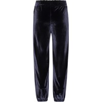 Alina is een donkerblauwe fluwelen joggingbroek met een ruime pasvorm. Het heeft elastiek rond de taille en pijpen