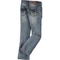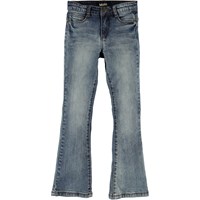 Aliza is een lichtgekleurde spijkerbroek in een gewassen look en met lichte uitlopende pijpen. De spijkerbroek heeft voor- en achterzakken. Hou er rekening mee dat maten tot en met 134 een drukknoop hebben in plaats van een jeansknoop. .