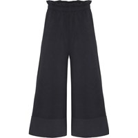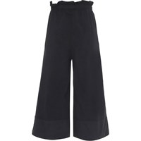 Alta is een zwarte geplooide broek met brede pijpen. Het heeft een elastische taille.