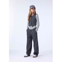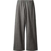 Grijze flanellen broek met zilverdraad in een ruimvallende pasvorm. De broek heeft een hoge taille, is licht getailleerd met wijde pijpen en heeft plooien aan de voorkant die zorgen voor een mooie pasvorm. Het heeft twee zijzakken en een mooie naad die langs de voorkant en achterkant van de pijpen loopt. De taille heeft een knoop- en ritssluiting en een verstelbare interne elastiek voor een goede pasvorm. Combineer het met het bijpassende vest voor een stijlvolle look.