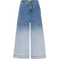 Alyna is een spijkerbroek met hoge taille en wijde pijpen. Alyna vervaagt van middenblauw naar lichtblauw aan de onderkant van de pijpen. Het heeft grote zakken aan de zijkanten en twee achterzakken. De jeans heeft elastiek achter in de taille en een knoop- en ritssluiting.