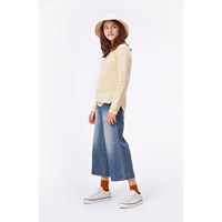 Alyna is een lichtblauwe culotte jeans met grote opgestikte zakken aan de voorkant. Het heeft een elastische taille aan de achterkant om een goede pasvorm te garanderen. Let op: maten t/m 134 hebben drukknopen en geen jeansknopen.