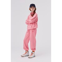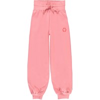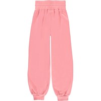 Amalia is een roze joggingbroek met een hoge taille en een recycle print op een van de zakken. Het heeft een elastische boord rond de taille en pijpen.