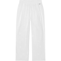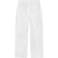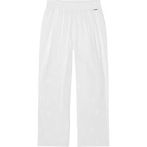 Witte broek van biologisch katoen. Het is van kant met een voering in dezelfde kleur. Door de elastische taille is de broek uiterst comfortabel en gemakkelijk aan te trekken. Het heeft een plooi aan de voorkant om het extra volume te geven.