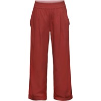 Amie is een ruime donkerrode broek. Het heeft omgeslagen pijpen en een comfortabele elastische taille.