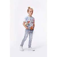 Angelica is een extra slim fit jeans in een lichtgrijze en blauwe wassing. Het heeft voor- en achterzakken. Let op: maten t/m 134 hebben drukknopen en geen jeansknopen.