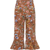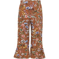 Anis is een bruine culotte broek met een print van wilde bloemen en kleine insecten. Het heeft een ruche rand aan de onderkant en een elastische taille voor een comfortabele pasvorm.
