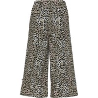 Annemarie is een wijde broek in een mini luipaardprint met roze en beige nuances. De broek heeft een brede elastische taille.