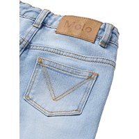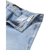 Lichtblauwe spijkerbroek gemaakt van elastisch biologische katoen. De spijkerbroek heeft een klassiek 5-pocket ontwerp, een elegante uitlopende vorm en een normale pasvorm. De taille kan eenvoudig worden aangepast met een interne elastiek zodat de broek perfect past bij alle kinderen. Maat 92-134 heeft een drukknoop en de maat 140-176 heeft een traditionele jeansknoop.