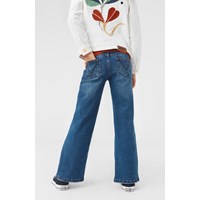 Asta is een blauwe spijkerbroek met een wijde pasvorm en licht uitlopende pijpen. Deze jeans is gemaakt van 1% elastaan, waardoor je er gemakkelijk in kunt bewegen. Asta is gemaakt van 27% gerecycled polyester, dat is gemaakt van gerecyclede plastic flessen.