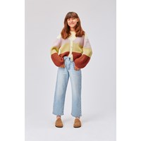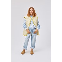 Astrid is een lichtblauwe jeans met een denim ruches in de taille, waardoor ze echt opvallen. Astrid heeft voor- en achterzakken en kan bij de pijpen worden opgerold voor een meer relaxte look. Het grootste deel van dit kledingstuk is gemaakt van biologisch katoen.