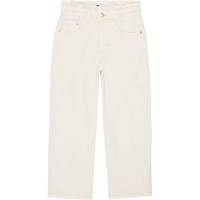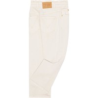 Gebroken witte katoenen jeans. Het heeft een goudkleurige drukknoop en ritssluiting, riemlusjes en een knoopje aan de binnenkant van de tailleband waarmee je jet kunt verstellen voor de perfecte pasvorm. De jeans heeft klassieke voor- en achterzakken met zandkleurige stiksels en een rucherand bij de taille. Het heeft rechte pijpen en een ruimvallende pasvorm.