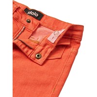 Rode spijkerbroek gemaakt van elastische katoen met voorzakken in authentieke jaren '70 stijl. Het heeft klassieke achterzakken, een elegante uitlopende vorm en een normale pasvorm. De taille is verstelbaar met een interne elastiek zodat de broek makkelijk aanpast kan worden en goed past bij alle kinderen. Maat 92-134 is uitgerust met een drukknoop en de maat 140-176 heeft een klassieke jeansknoop.