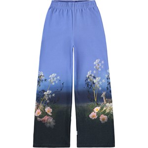 Blauwe joggingbroek gemaakt van biologisch katoen. De joggingbroek heeft een ruimvallende pasvorm met wijde pijpen en elastiek rond de taille en een kleurrijke print van een weide met bloemen. Combineer de joggingbroek met de sweater om de set compleet te maken.