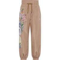 Oleen is een lichtroze trainingsbroek met een hoge taille en een bloemenprint op een van de pijpen.Het heeft een wijde elastische taille met koordjes. De trainingsbroek zorgt voor comfort en flexibiliteit zodat je kunt bewegen zonder zorgen. Deze trainingsbroek maakt deel uit van Molo's sportcollectie, die mode en sport naadloos laat aansluiten. Molo’s sportcollectie is gemaakt met een unieke en hoogwaardige technologie genaamd HeiQ Smart Temp, die het lichaam ondersteunt om af the koelen. De afkoelfunctie wordt geactiveerd wanneer het lichaam warm en zweterig is. Het wordt gedeactiveerd wanneer het lichaam is afgekoeld. HeiQ Smart Temp zorgt voor optimaal comfort en prestaties. Het is onafhankelijk getest om er zeker van te zijn dat het veilig is voor de huid.