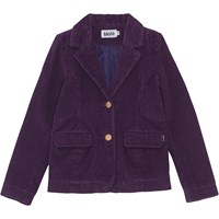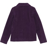 Harrietta is een donkerpaars fluwelen jasje met revers en een knoopsluiting aan de voorkant. Draag de jas met bijpassende broek.