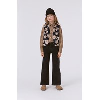 Zwart gilet van imitatiebont met een beige bloemenpatroon. Het is van 100% polyester, heeft een V-hals, beige bloemen en een normale pasvorm. Het is perfect voor koudere dagen. Voor een stoere look draag je het over een blouse, een t-shirt met lange mouwen of een jurk.
