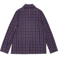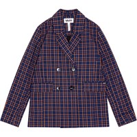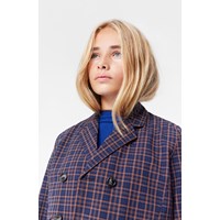 Stijlvolle blazer in bruin en blauw geruit stof in een normale pasvorm. De jas heeft een pakkraag, klepzakken en knoopsluiting aan de voorkant. Combineer het met bijpassende shorts of broeken in dezelfde stof om een stijlvolle klassieke set te creëren.