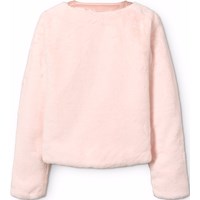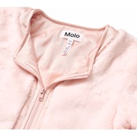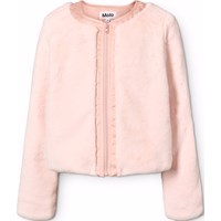 Zachte roze jas van nepbont met een brede strook in bijpassende kleur rond de hals en rits, voor een elegante en samenhangende uitstraling.