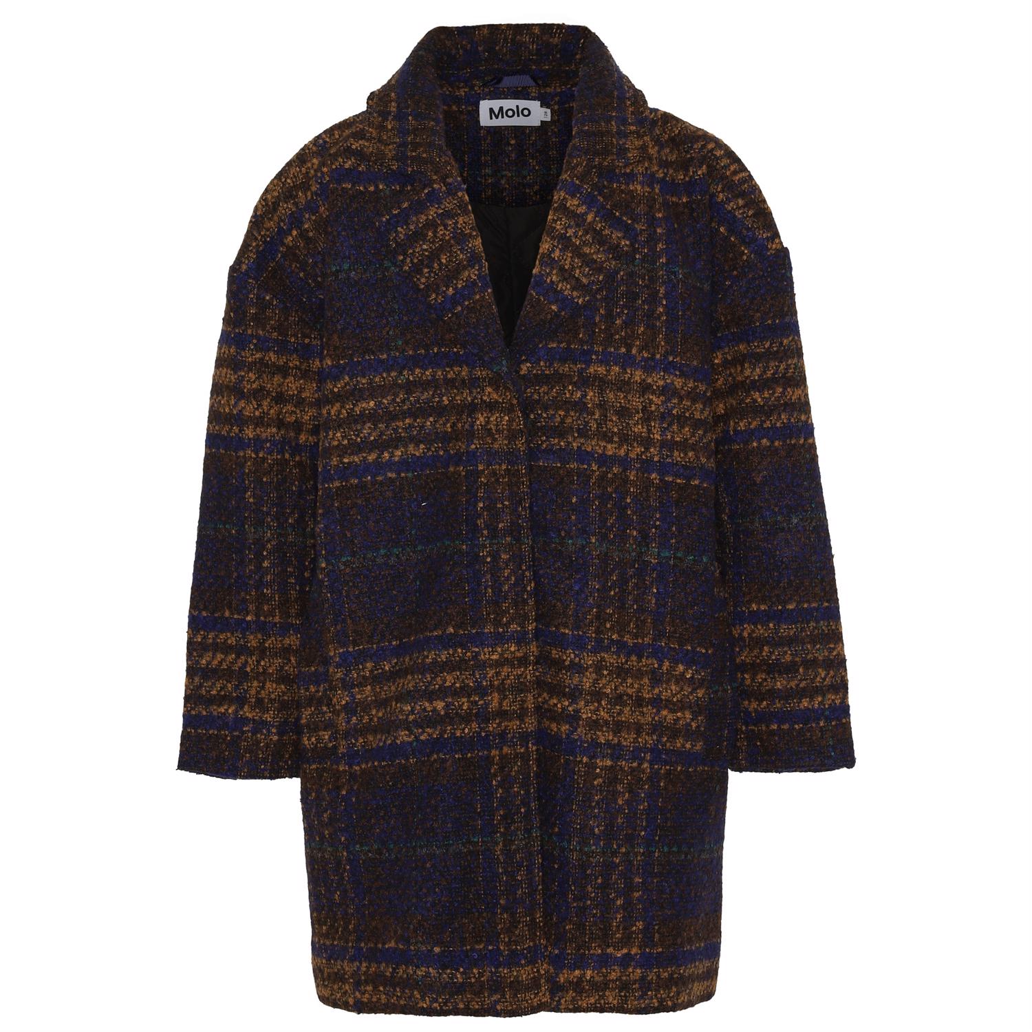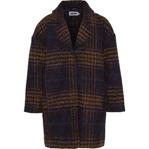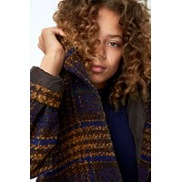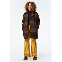 Holla is een geblokte jas in blauw en goud. De jas heeft een kraag en een knoopsluiting.