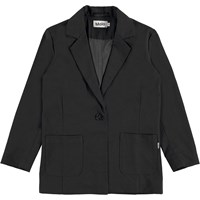 Hollie is een zwarte blazer met revers en een knoop aan de voorkant. Het heeft twee grote zakken aan de voorkant.
