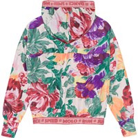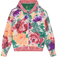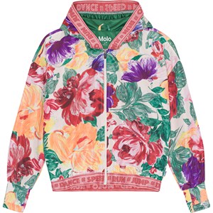 Luchtige trainingsjas met bloemenprint in diepe rijke kleuren met zichtbare penseelstreken. De trainingsjas heeft een ritssluiting aan de voorkant, een capuchon en een oudroze boord met tekst. De trainingsjas maakt deel uit van Molo''s sportcollectie, die sport en mode integreert. Voor een complete en sportieve look draag je de trainingsjas met een van de bijpassende stijlen uit de sportcollectie van Molo. De sportcollectie van Molo is gemaakt met een unieke, hoogwaardige technologie genaamd HeiQ Smart Temp, die het lichaam ondersteunt om af te koelen. De afkoelfunctie wordt geactiveerd wanneer het lichaam warm en zweterig is. Het wordt gedeactiveerd wanneer het lichaam is afgekoeld. HeiQ Smart Temp zorgt voor optimaal comfort en prestatie. Het is onafhankelijk getest om er zeker van te zijn dat het veilig is voor de huid.