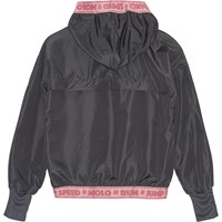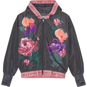 Zwarte trainingsjas met een bloemenprint in diepe rijke kleuren met zichtbare penseelstreken. De jas heeft een ritssluiting aan de voorkant, een capuchon en een oudroze boord met tekst. De trainingsjas maakt deel uit van Molo''s sportcollectie, die sport en mode integreert. Voor een complete en sportieve look draag je de trainingsjas met een van de bijpassende stijlen uit de sportcollectie van Molo. De sportcollectie van Molo is gemaakt met een unieke, hoogwaardige technologie genaamd HeiQ Smart Temp, die het lichaam ondersteunt om af te koelen. De afkoelfunctie wordt geactiveerd wanneer het lichaam warm en zweterig is. Het wordt gedeactiveerd wanneer het lichaam is afgekoeld. HeiQ Smart Temp zorgt voor optimaal comfort en prestatie. Het is onafhankelijk getest om er zeker van te zijn dat het veilig is voor de huid.