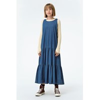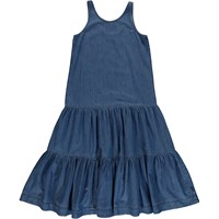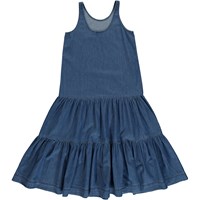 Cai is een mouwloze zachte blauwe spijkerjurk. De jurk heeft laagjes.