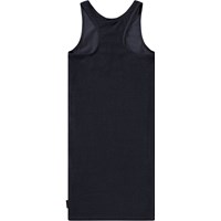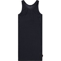 Elastische en knielange zwarte tanktopjurk met structuur De jurk sluit nauw aan op het lichaam en heeft brede bandjes en een ronde hals. Het materiaal droogt snel en is ideaal voor naar het zwembad of het strand.
