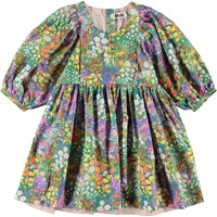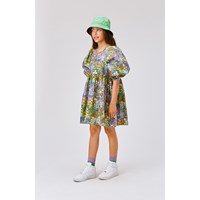 Caio is een jurk in vele kleuren met een bloemenprint. De jurk heeft een ruimvallende pasvorm en heeft een wijde rok en mouwen en is gemaakt van biologisch katoen. De jurk heeft een blinde rits aan de achterkant.