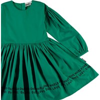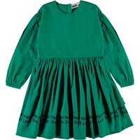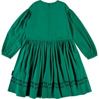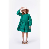 Cinzia is een katoenen popeline jurk met lange mouwen in groen. Het is een volle jurk die mooi valt.