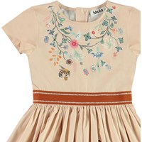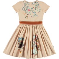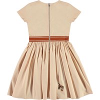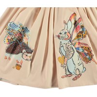 Candy is een roze jurk met een print van bloemen op de bovenkant en een konijn en egel met vleugels op de rok. Het is gemaakt van stretch popeline, wat het extra comfortabel maakt. Candy heeft een ritssluiting in de nek en een gestreepte elastische tailleband.