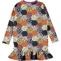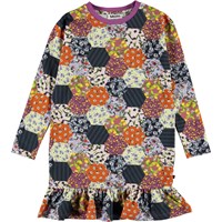 Caras is een jurk met lange mouwen en een klein rokje in Molo's "Patchwork" print met bloemen en citroenen.