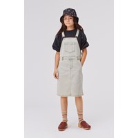 Caras is een lichtgekleurde spijker overgooier met verstelbare schouderbandjes. De overgooier heeft zakken aan de voor-, zij- en achterkant.