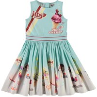 Molo heeft een eigen ijsmenu poster gemaakt met klassiekers en nieuwe favorieten. Kies je favoriet op deze lichtblauwe Carli-jurk. De jurk is mouwloos en heeft een gestreept lint in de taille. Het heeft een ritssluiting aan de achterkant.