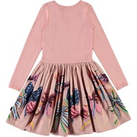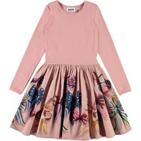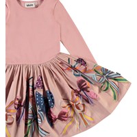 De Casie heeft een roze top met lange mouwen en een vrouwelijke poplin rok met strikjes print in prachtige kleuren.