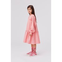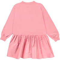Cecelia is een roze jurk met een sweater top. De jurk heeft een vrouwelijke rok.