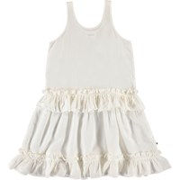 Charlotte is een witte jurk met een gedrapeerde volumineuze rok.