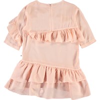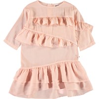 Droom weg in de lichtgewicht Cher jurk. Cher heeft een asymmetrische ruche aan de voorkant en een ritssluiting aan de achterkant.