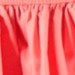 Koraalkleurige asymmetrische jurk van biologisch katoen. De jurk heeft een wijde poplin ruche rond de hals, een aansluitende ribtop en een knielange cirkelrok met veel volume.
