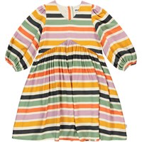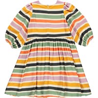 Chrissy is een gestreepte jurk met grote wijde mouwen en een v-hals. De jurk heeft een ritssluiting aan de achterkant.