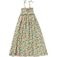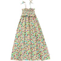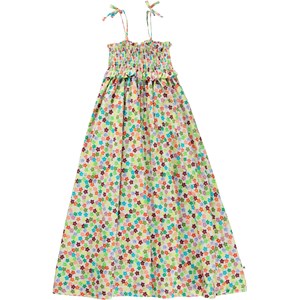 Lange lichtgewicht zomerjurk van 100% biologisch katoen met schouderbandjes. De print bestaat uit kleine aquarel bloemen in allerlei soorten en kleuren. De bovenkant van de jurk is gesmokt en de schouderbandjes zijn verstelbaar voor een comfortabele pasvorm in de zomerse hitte. De jurk heeft een normale pasvorm.
