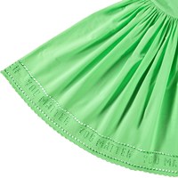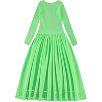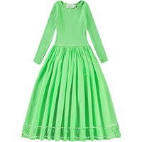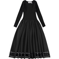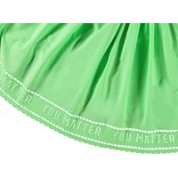 Zwarte jurk van biologisch katoen met lange mouwen, een aansluitende jerseyrib top, ronde hals en een volumineuze cirkelrok van poplin katoen. Aan de onderkant van de jurk is een geborduurde boord met de tekst 'You Matter'.